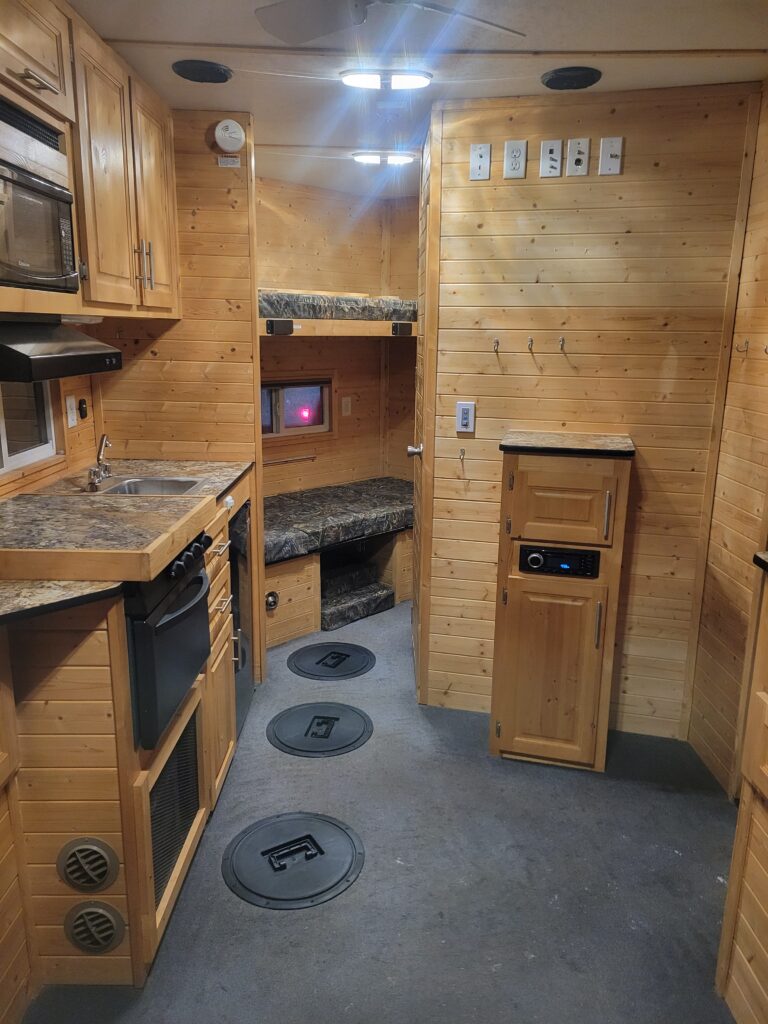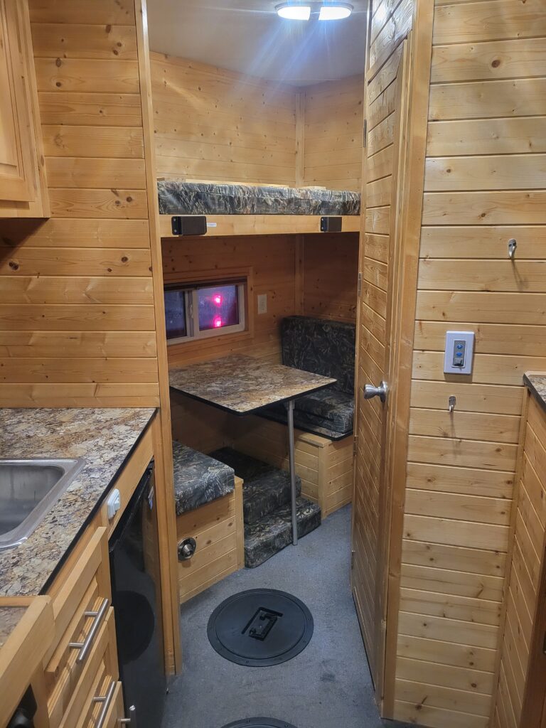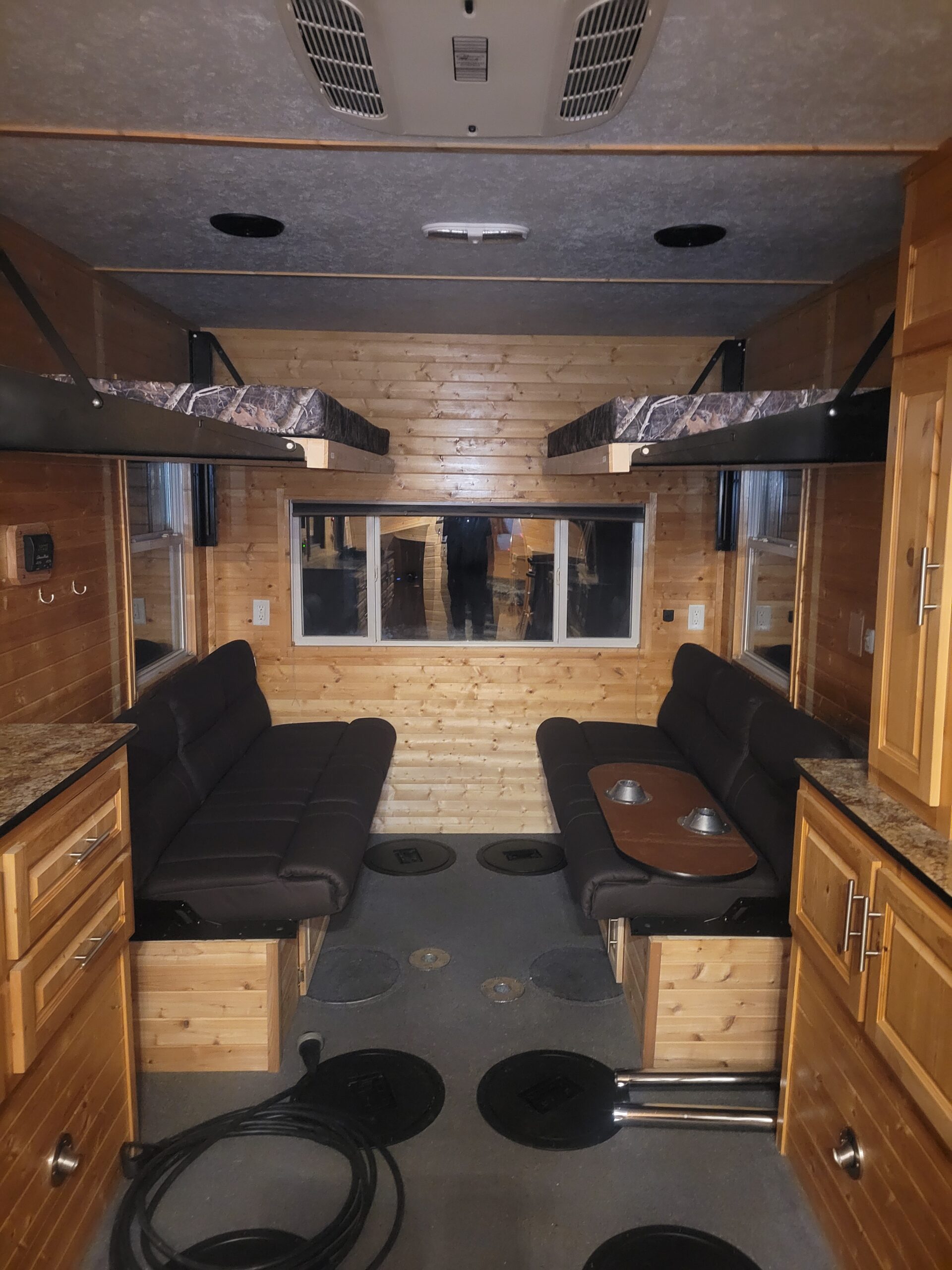 Our 2018 Grey Wolf fish house with 4 beds is another great option for families. The rear dinette converts to a bed in the back of the house and can sleep two. The single dinette in the front of the…